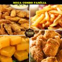 Filézinhos de tilápia empanados, filézinhos de frango empanados e temperados a moda do santo, batata frita (Escolha o tipo) e polentinha frita.