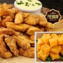 Porção de filé de tilápia empanados + polenta + molho. Selecione o adicional de batata para acompanhar sua porção.