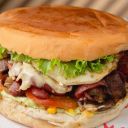 Delicioso xis que agora leva bacon na receita: com pão de Hambúrguer, alface, maionese especial, ketchup, hambúrger de costela 120g, tirinhas de bacon, fatia de queijo, ovo na chapa, calabresa e batata palha. Retirada somente na rua polonia, 69e Bairro Presidente Médice.